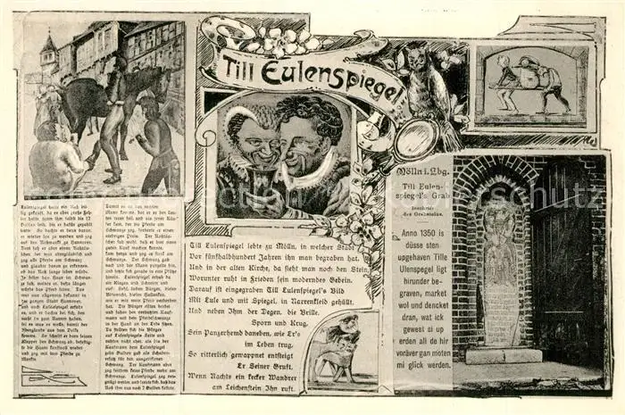 Moelln_Lauenburg Eulenspiegel Illustrationen Grabstein Moelln_Lauenburg postalisch nicht gelaufen 1921-1965 Erhaltung siehe scans [WerneD78] WernPID7