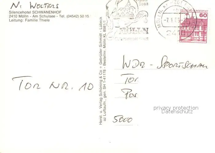 Moelln_Lauenburg Fliegeraufnahme Silencehotel Schwanenhof Moelln_Lauenburg postalisch gelaufen nach 1965 Erhaltung siehe scans [KathaD81] Kathoren