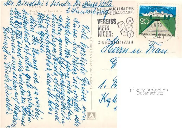 Moelln_Lauenburg Seeblick mit St Nicolaikirche Moelln_Lauenburg postalisch gelaufen 1970 Erhaltung siehe scans [WerneD78] WernPID7