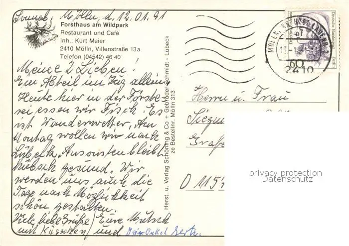 Moelln__Lauenburg Forsthaus am Wildpark Gastraeume postalisch gelaufen 1991 Erhaltung siehe scans [WerneD78] WernPID7