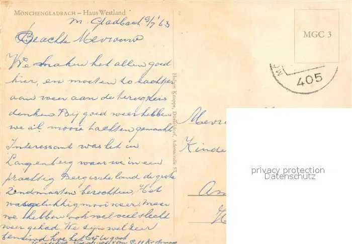 Moenchengladbach Haus Westland Moenchengladbach postalisch gelaufen 1963 Erhaltung siehe scans [LiesaD40] LiesID40