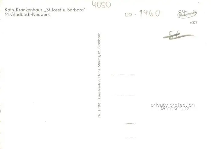 Moenchengladbach Kath. Krankenhaus St. Josef u. Barbara Moenchengladbach postalisch nicht gelaufen 1960 Erhaltung siehe scans [LiesaD40] LiesID40