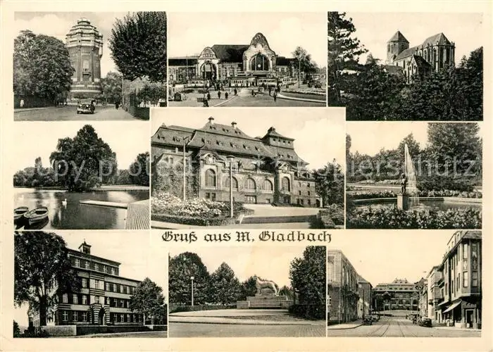 AK / Ansichtskarte Moenchengladbach Wasserturm Bahnhof Kirche Park Monument Strassenpartie Moenchengladbach
