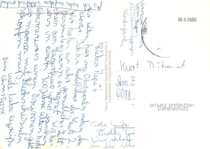 Moenchsdeggingen Kategorie Alte Ansichtskarten Postkarten bx49783 Moenchsdeggingen Stadtpanorama Kloster Kirche Schwimmbad Moenchsdeggingen postalisch gelaufen nach 1965 Erhaltung siehe scans [FriedD77]