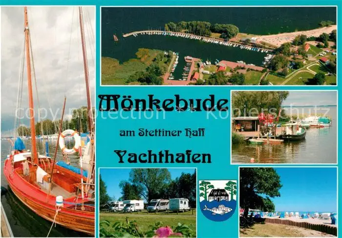 AK / Ansichtskarte Moenkebude Yachthafen Campingplatz Strand Stettinger Haff Fliegeraufnahme Moenkebude