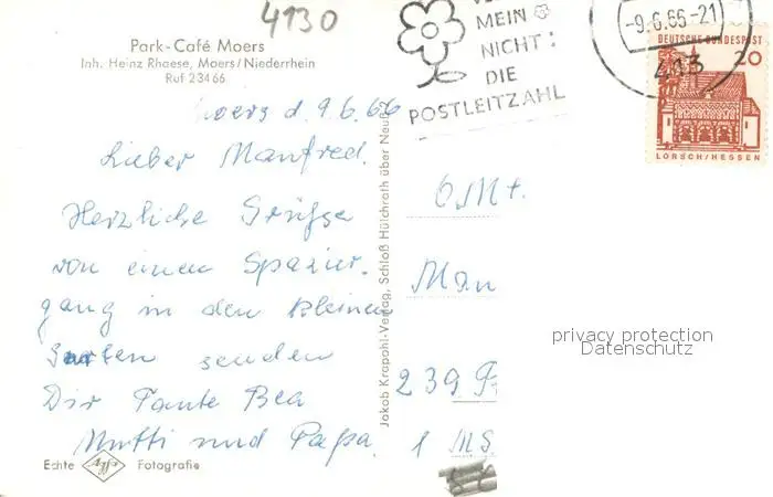 Moers_Moers Park Cafe im Schlosspark Statue Gondelteich Wasserspiele postalisch gelaufen 1966 Erhaltung siehe scans [WerneD78] WernPID7