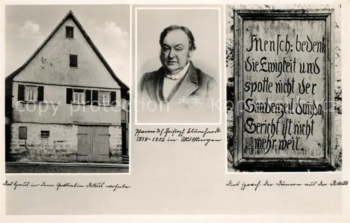 Moettlingen Pfarrer Blumhardt Portrait Gottliebin Dittus Haus Moettlingen postalisch nicht gelaufen 1921-1965 Erhaltung siehe scans [FriedD77] Frierer