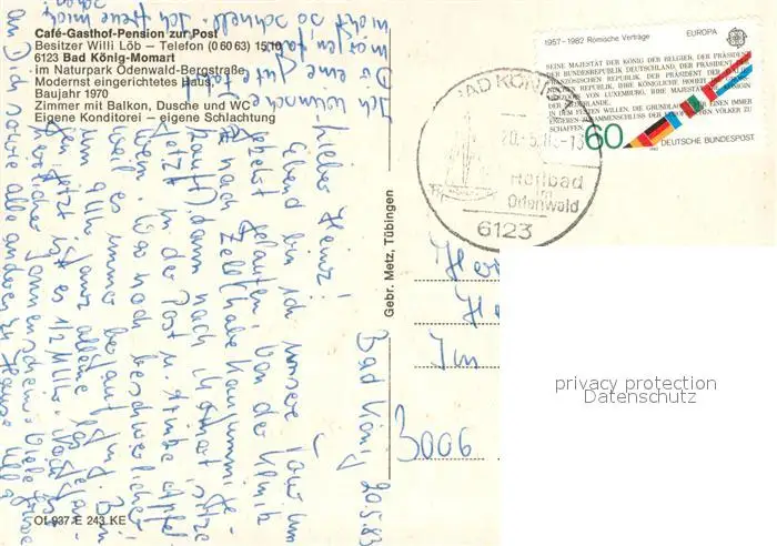 Momart Cafe Gasthof Pension zur Post Eingang Gastraum Momart postalisch gelaufen 1983 Erhaltung siehe scans [WerneD78] WernPID7