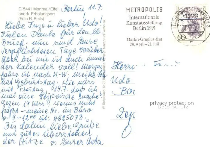 Monreal_Eifel Panorama Erholungsort mit Blick zur Burg Monreal Eifel postalisch gelaufen 1991 Erhaltung siehe scans [FriedD77] Frierer
