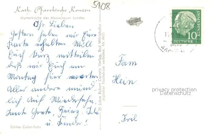 Monschau Kath. Pfarrkirche Konzen Eifel Monschau postalisch gelaufen 1958 Erhaltung siehe scans [LiesaD40] LiesID40