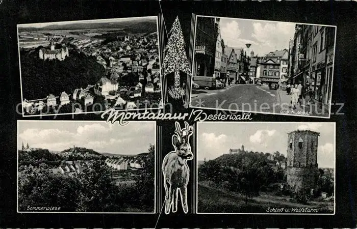 Montabaur_Westerwald Sommerwiese Schloss Wolfsturm Grosser Markt Montabaur_Westerwald postalisch gelaufen 1960 Erhaltung siehe scans [KathaD81] Kathoren