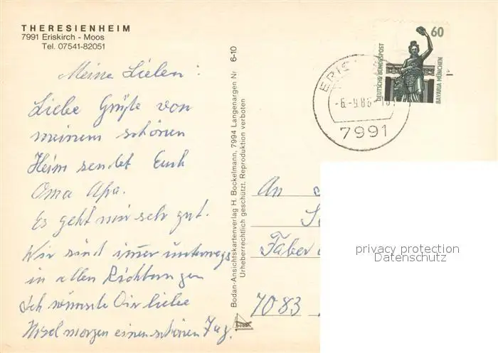Moos_Eriskirch Theresienheim Moos Eriskirch postalisch gelaufen 1986 Erhaltung siehe scans [WerneD78] WernPID7