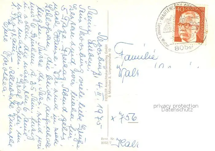 Moosburg_Isar Stadtzentrum Kirche Musikkapelle Blumen Bach Waldpartie Moosburg Isar postalisch gelaufen 1975 Erhaltung siehe scans [FriedD77] Frierer