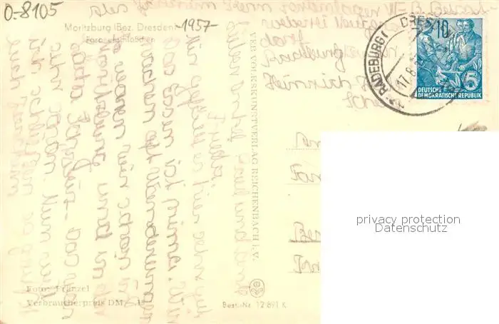 Moritzburg_Sachsen Fasanenschloesschen Moritzburg Sachsen postalisch gelaufen 1957 Erhaltung siehe scans [LiesaD40] LiesID40