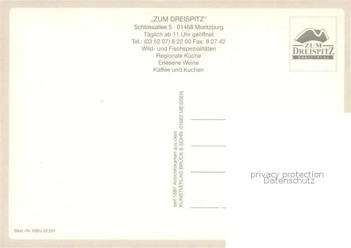Moritzburg_Sachsen Zum Dreispitz Schloss Hotel Gaststube Trachten Moritzburg Sachsen postalisch nicht gelaufen nach 1965 Erhaltung siehe scans [WerneD78] WernPID7