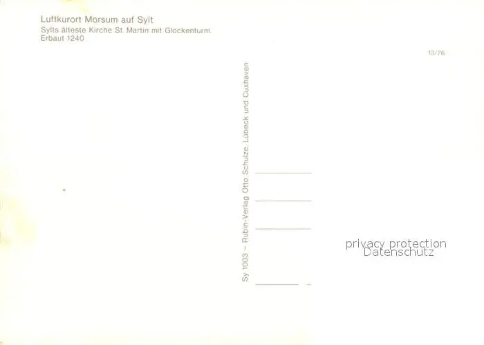 Morsum_Sylt Sylts aelteste Kirche St Martin mit Glockenturm 13. Jhdt. Morsum Sylt postalisch nicht gelaufen nach 1965 Erhaltung siehe scans [FriedD77] Frierer