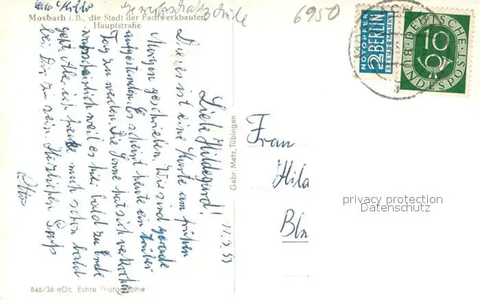 Mosbach_Baden Hauptstrasse Kirche Stadt der Fachwerkbauten Mosbach_Baden postalisch gelaufen 1953 Erhaltung siehe scans [FriedD77] Frierer