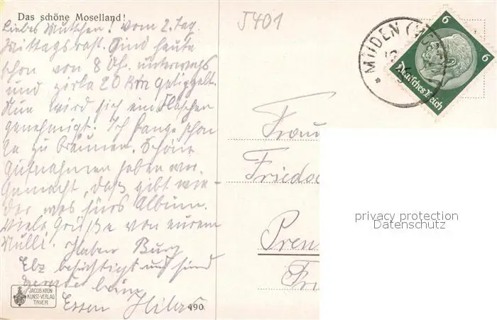 Moselkern Moselpartie Moselkern postalisch gelaufen 1935 Erhaltung siehe scans [LiesaD40] LiesID40
