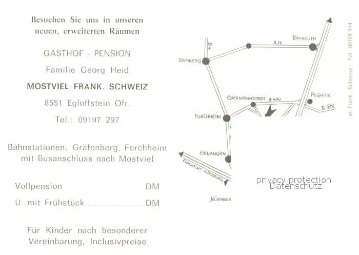 Mostviel Gasthof-Pension Schlossblick Anfahrt Mostviel postalisch nicht gelaufen nach 1965 Werbekarte (keine Postkarte) Erhaltung siehe scans [LiesaD40] Werbekarte (keine Postkarte) LiesID40