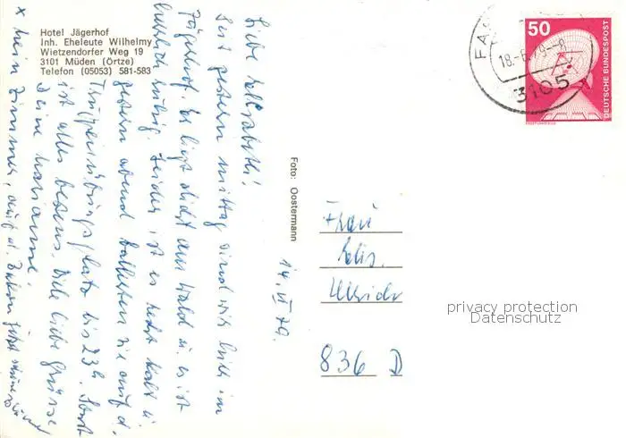 Mueden_oertze Hotel Jaegerhof Restaurant Mueden oertze postalisch gelaufen 1979 Erhaltung siehe scans [FriedD77] Frierer