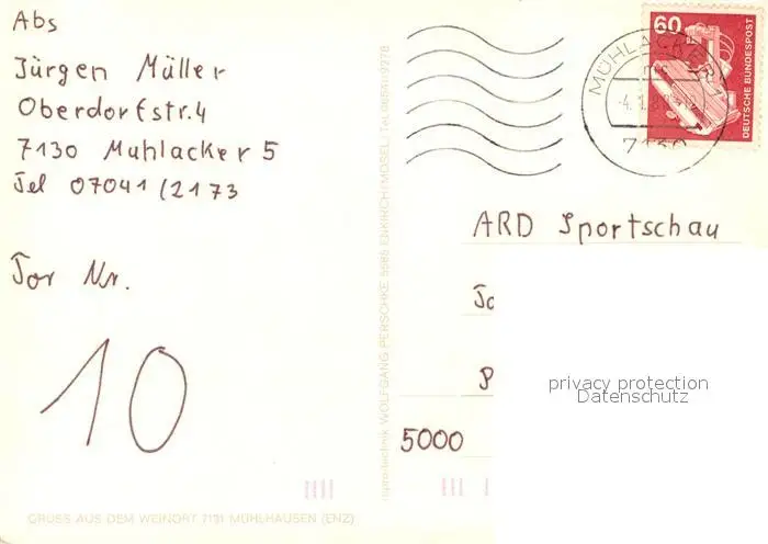 Muehlacker Schloss Muehlacker postalisch gelaufen 1988 Erhaltung siehe scans [WerneD78] WernPID7