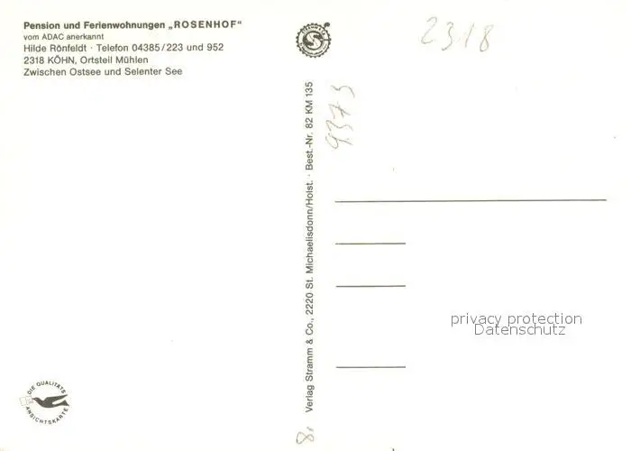 Muehlen_Koehn Pension Rosenhof Ferienwohnungen postalisch nicht gelaufen nach 1965 Erhaltung siehe scans [FriedD77] Frierer