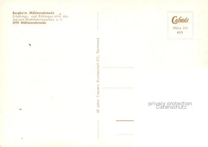 Muehlenrahmede Bergheim Erholungs- und Bildungsstaette Muehlenrahmede postalisch nicht gelaufen 1962 Erhaltung siehe scans [FriedD77] Frierer