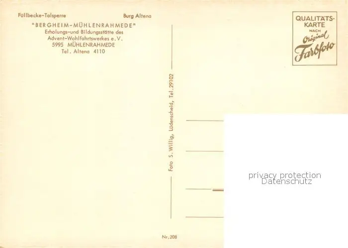 Muehlenrahmede Fuellbecke Talsperre Burg Altena Bergheim Muehlenrahmede Muehlenrahmede postalisch nicht gelaufen nach 1965 Erhaltung siehe scans [FriedD77] Frierer