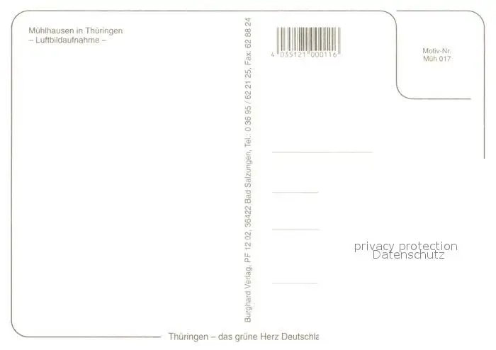 Muehlhausen_Thueringen Fliegeraufnahme Muehlhausen Thueringen postalisch nicht gelaufen nach 1965 Erhaltung siehe scans [NatalD47] NataID47