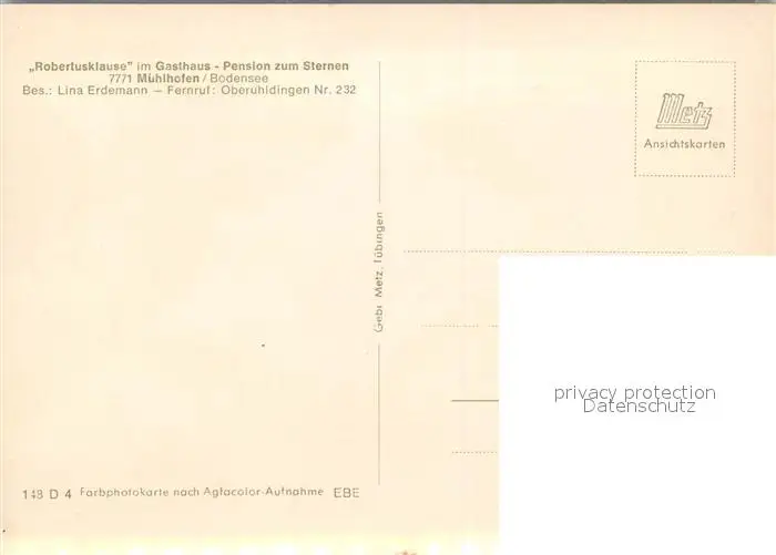 Muehlhofen_Uhldingen-Muehlhofen Robertusklause Gasthaus Pension zum Sternen Muehlhofen postalisch nicht gelaufen nach 1965 Erhaltung siehe scans [KathaD81] Kathoren