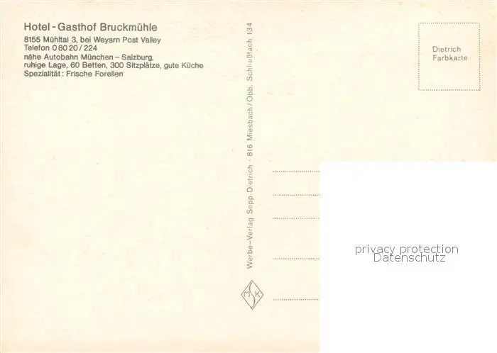 Muehltal_Mangfalltal Hotel Gasthof Bruckmuehle Terrasse Muehltal Mangfalltal postalisch nicht gelaufen nach 1965 Erhaltung siehe scans [FriedD77] Frierer