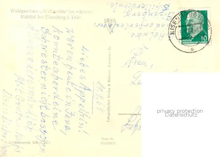 Muehltal Thueringen Kategorie Alte Ansichtskarten Postkarten bx44466 Muehltal_Thueringen Waldgasthaus Walkmuehle Muehltal Thueringen postalisch gelaufen 1964 Erhaltung siehe scans [PaolaD17]
