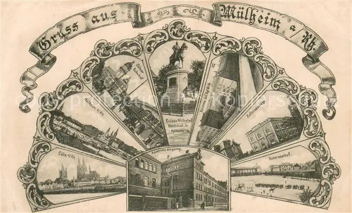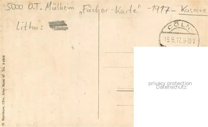 Muelheim_Rhein Kaserne Faecherkarte Muelheim Rhein postalisch gelaufen 1917 Erhaltung siehe scans [WerneD78] WernPID7