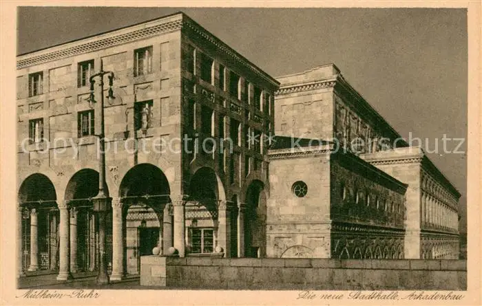 Muelheim_Ruhr Neue Stadthalle Arkadenbau Muelheim Ruhr postalisch nicht gelaufen 1921-1965 Erhaltung siehe scans [WerneD78] WernPID7