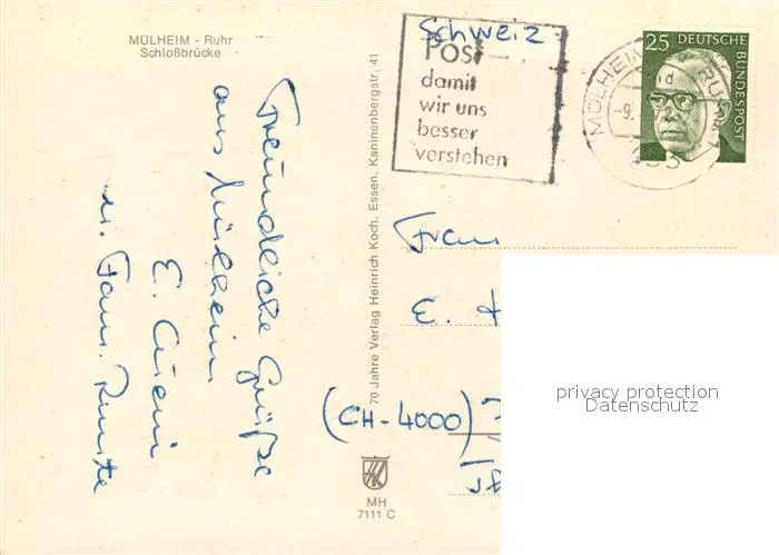 Muelheim_Ruhr Schlossbruecke Ruhrpartie Muelheim Ruhr postalisch gelaufen 1972 Erhaltung siehe scans [LiesaD40] LiesID40