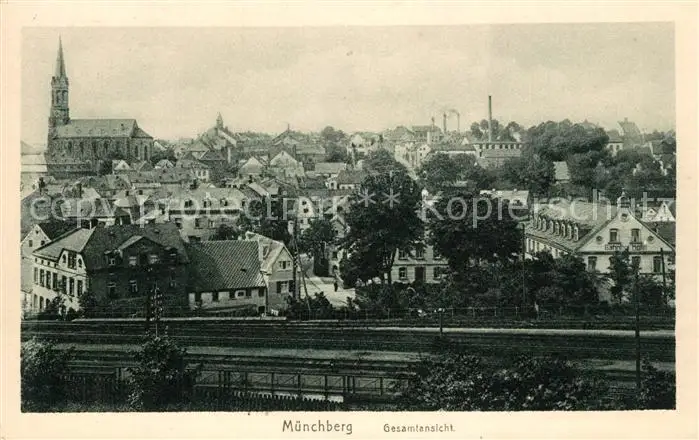 Muenchberg_Oberfranken Panorama Kirche Muenchberg Oberfranken postalisch gelaufen 1921-1965 Erhaltung siehe scans [KathaD81] Kathoren