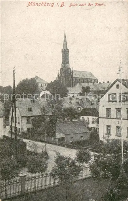 Muenchberg__Oberfranken Teilansicht mit Kirche postalisch gelaufen 1921-1965 Erhaltung siehe scans [FriedD77] Frierer