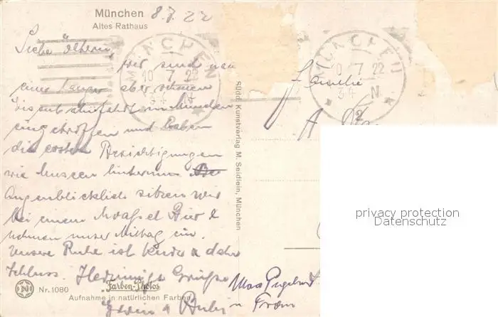 Muenchen Altes Rathaus Muenchen postalisch gelaufen 1922 Erhaltung siehe scans [WerneD78] WernPID7
