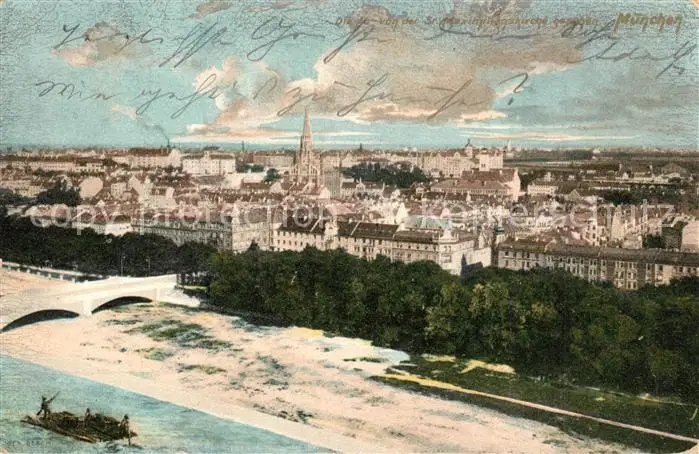 Muenchen Blick von der Maximilianskirche Muenchen postalisch gelaufen 1907 Erhaltung siehe scans [WerneD78] WernPID7