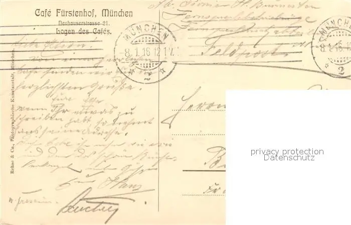 Muenchen Cafe Fuerstenhof Muenchen postalisch gelaufen 1916 Feldpost Erhaltung siehe scans [FriedD77] Feldpost Frierer