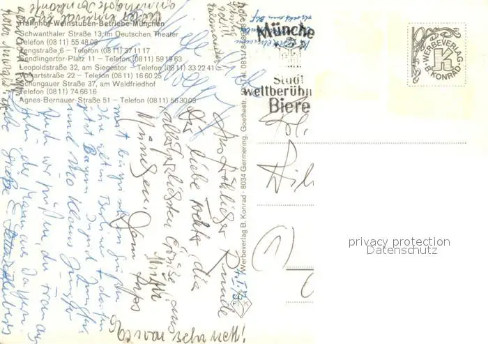 Muenchen Hahnhof Weinstuben Muenchen postalisch gelaufen nach 1965 Erhaltung siehe scans [WerneD78] WernPID7