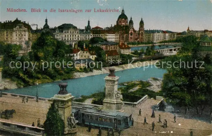 AK / Ansichtskarte Muenchen Isaranlagen mit Lukaskirche Muenchen