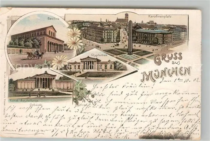 Muenchen Karolinenplatz Basilica Glyptothek Kunstausstellungsgeb?ude / Muenchen postalisch gelaufen 1902 Erhaltung siehe scans [KathaD81] [Kathoren sa110box ]