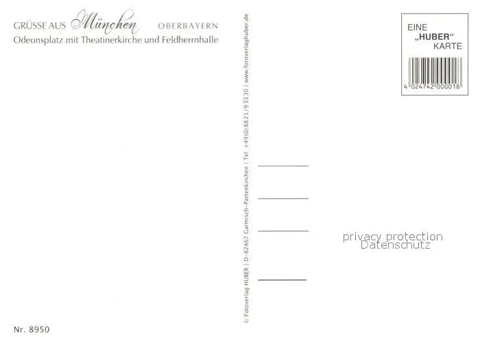 Muenchen Odeonsplatz Theatinerkirche Feldherrnhalle Huber Karte Nr 8950 Muenchen postalisch nicht gelaufen nach 1965 Erhaltung siehe scans [FriedD77] Frierer