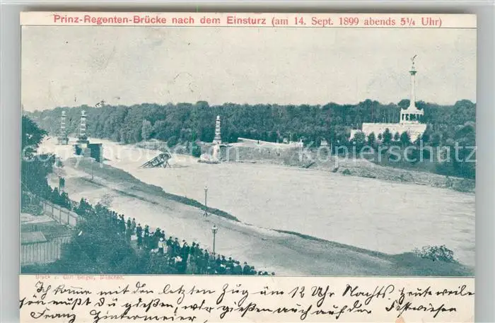 Muenchen Prinzregentenbruecke nach dem Einsturz 1899 Muenchen postalisch gelaufen 1900 Erhaltung siehe scans [FriedD77] Frierer