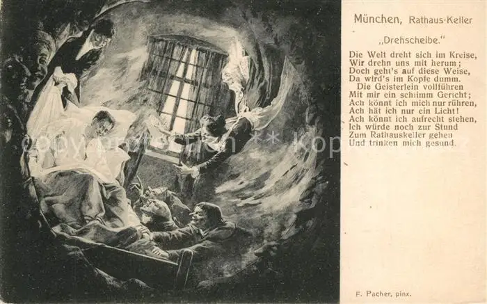 Muenchen Rathauskeller Drehscheibe Gedicht Kuenstlerkarte Muenchen postalisch gelaufen 1907 Erhaltung siehe scans [FriedD77] Frierer
