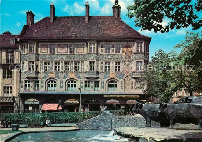 AK / Ansichtskarte Muenchen Ruffini Haus Historisches Gebaeude mit Rinderbrunnen Muenchen