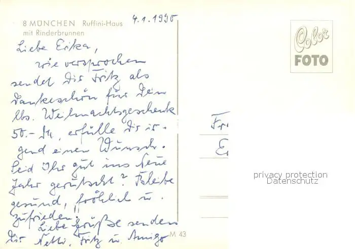 Muenchen Ruffini Haus Historisches Gebaeude mit Rinderbrunnen Muenchen postalisch nicht gelaufen 1990 Erhaltung siehe scans [FriedD77] Frierer