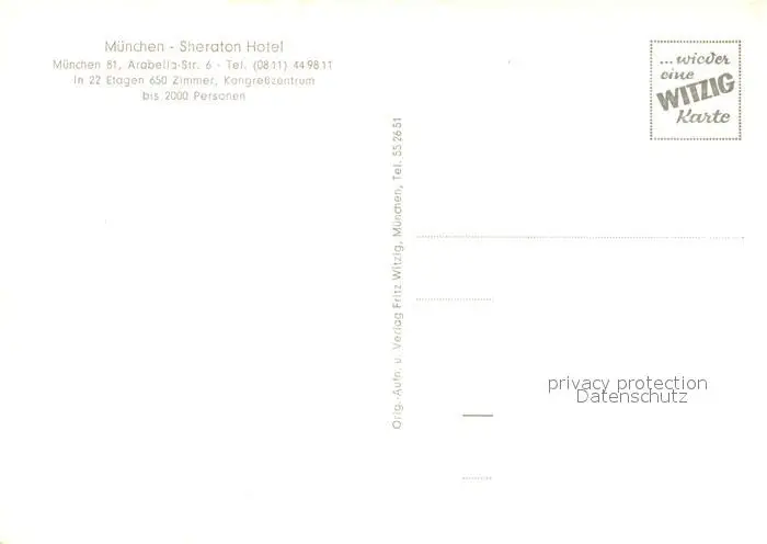 Muenchen Sheraton Hotel Muenchen postalisch nicht gelaufen nach 1965 Erhaltung siehe scans [WerneD78] WernPID7