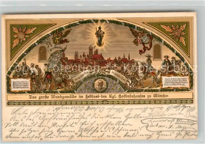 Muenchen Wandgemaelde im Festsaal des Kgl Hofbraeuhauses Muenchen postalisch gelaufen 1900 Erhaltung siehe scans [FriedD77] Frierer